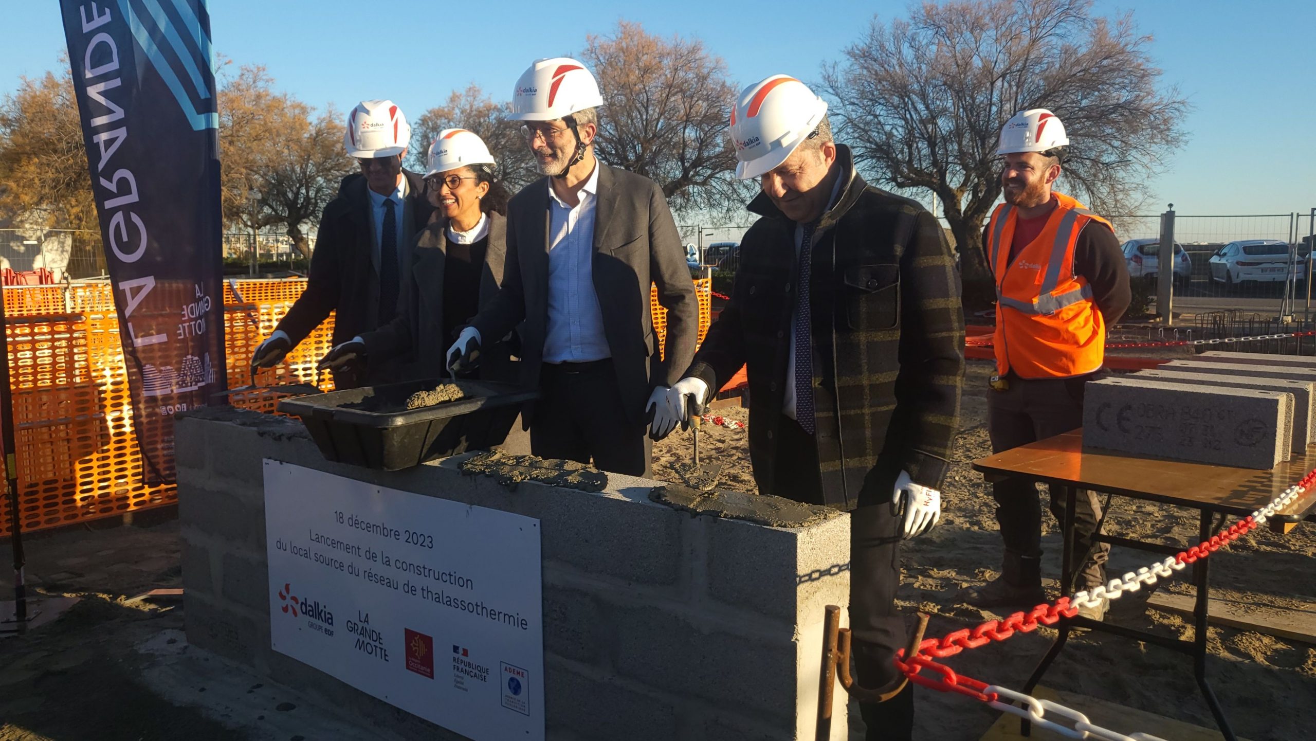 La première pierre du “local source”, première phase des quatre temps du chantier, a été posée ce lundi 18 décembre, par les acteurs du dispositif : la Ville, le concessionnaire Dalkia, l’Ademe Occitanie et le Conseil régional.
